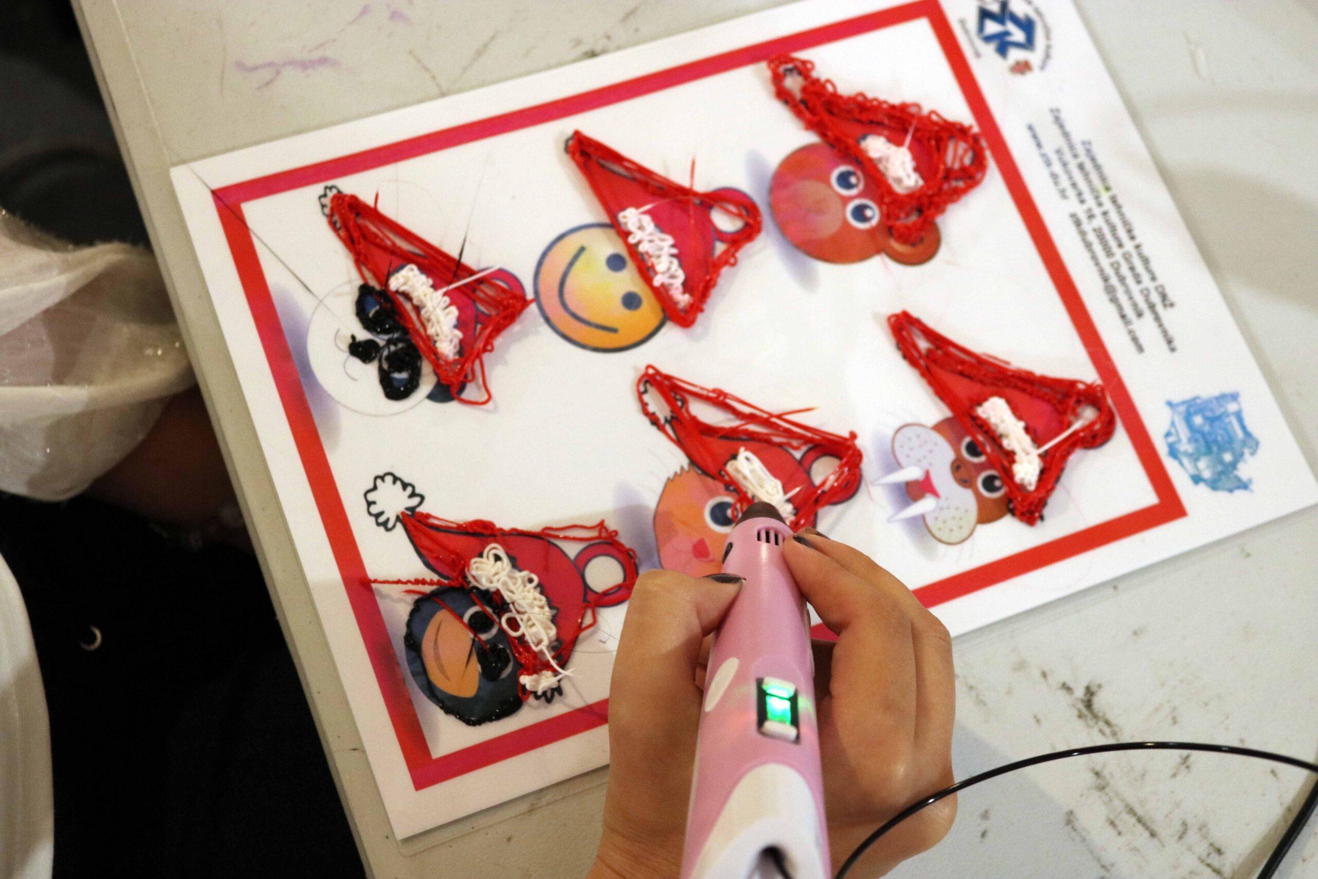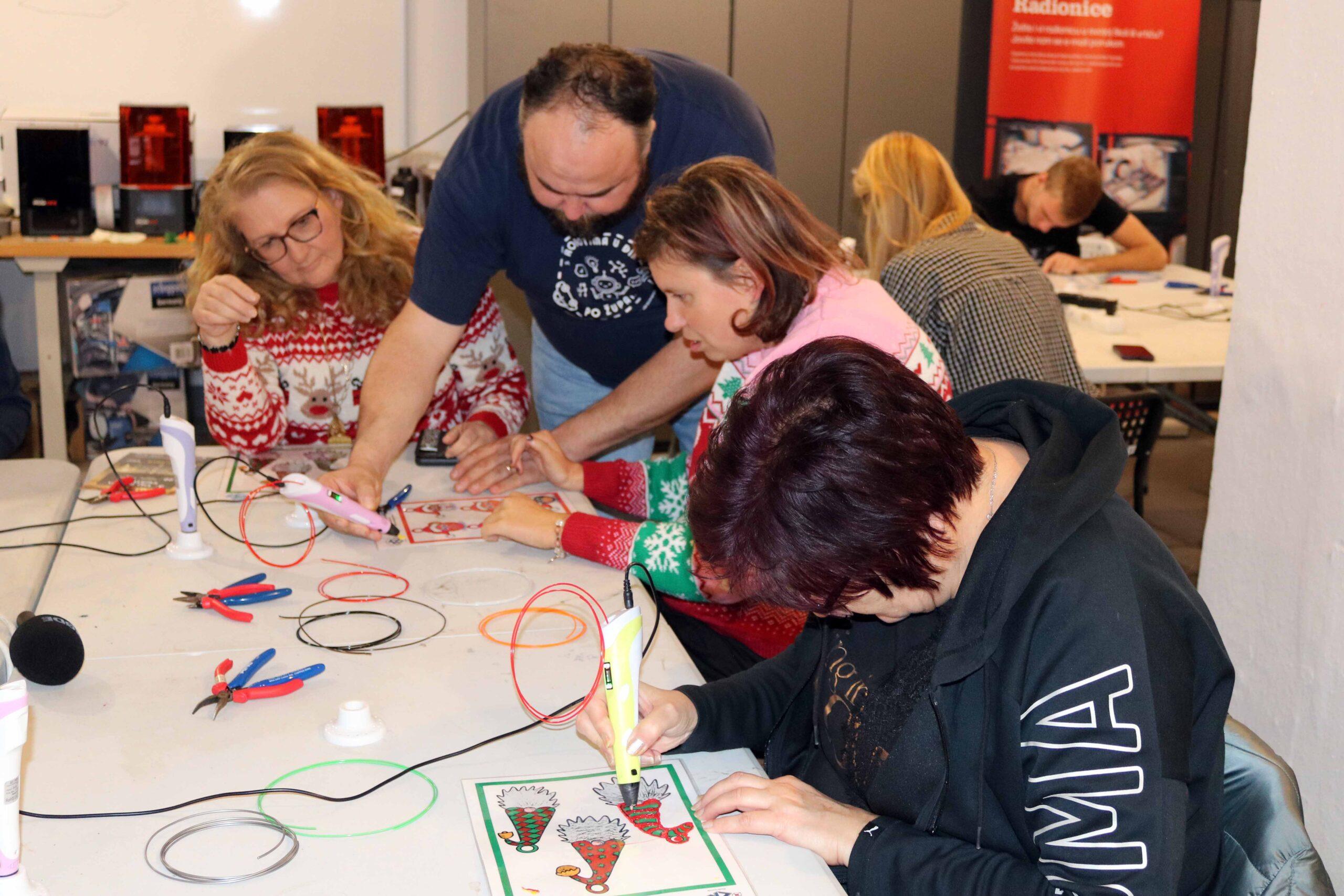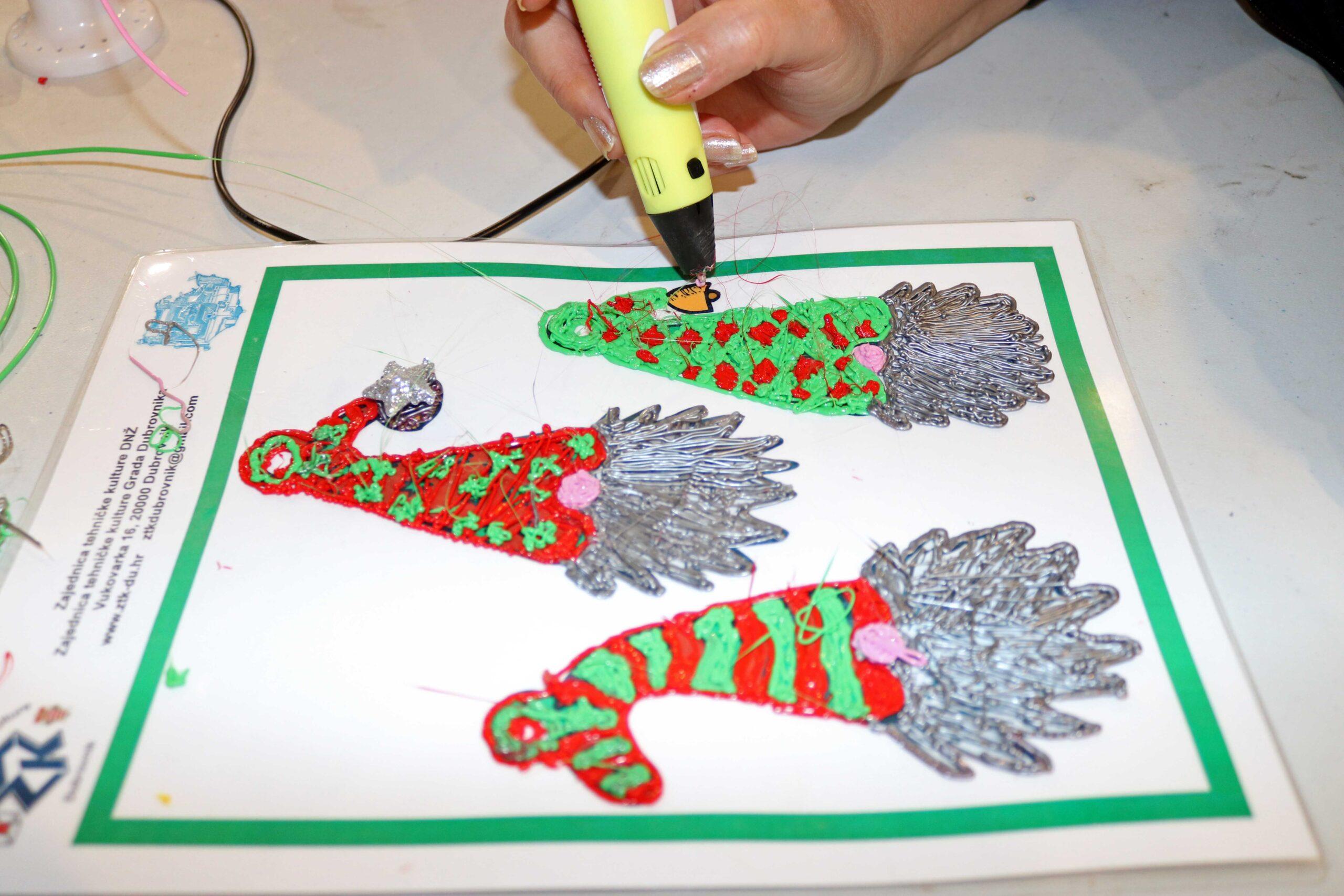 Uz pomoć plastike koja se zagrijava u 3D olovci, koristeći predloške, izrađivali su 2D i 3D predmete poput božićnih patuljaka, kuglica za bor, zvijezda, pahuljica i drugih ukrasa. Na taj su način razvijali kreativnost, inovativnost i tehničke vještine, a na kraju su svoje radove ponijeli kući.