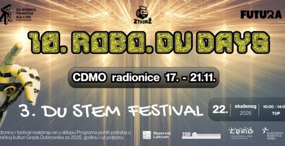 Zajednice tehničke kulture Grada Dubrovnika i Dubrovačko-neretvanske županije u suradnji s Informatičkim klubom Futura organiziraju jubilarno 10. izdanje manifestacije Robo.Du Days, s bogatim programom od čak 24...