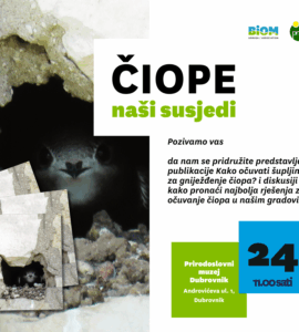 Udruga Biom, Prirodoslovni muzej Dubrovnik i Zajednica tehničke kulture Grada Dubrovnika uz podršku Grada Dubrovnika proveli su projekt „Čiope, naši susjedi“ čiji je cilj očuvati čiope u Dubrovniku. Prezentacija...