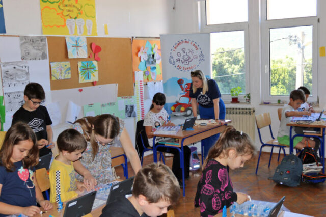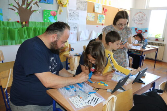 Radionicu malih inženjera vodili su Tomo Sjekavica i Victoria Ogresta, a učenici su imali priliku sastavljati motorizirane modele od kockica – automobile, kamione, bagere, kameleone, klokane, pauke i druge. Uz pomoć uputa na tabletima i podršku voditelja, djeca su razvijala motoričke sposobnosti, kreativnost i strpljenje.